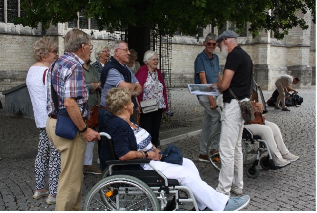 Reisleider Huib de Waal, die zijn deel van de organisatie uitstekend voor elkaar had, informeerde de leden over het programma en de rondwandeling door het centrum. Er werden drie groepen geformeerd. Een groep met snelle wandelaars, een groep voor een kleinere route, en een groep met minder mobiele gasten.