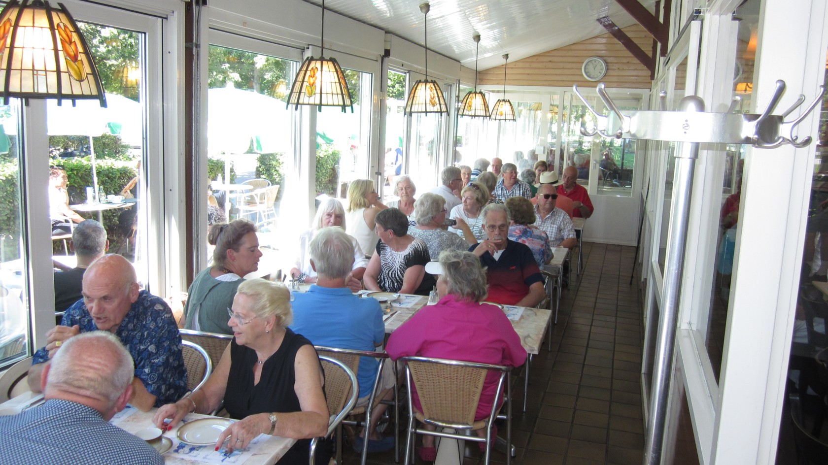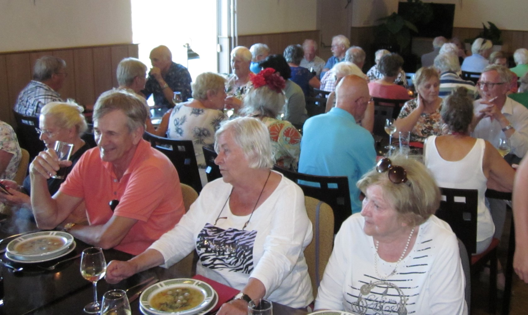 Keurig op tijd waren de rondvaartboten weer terug en konden de leden weer in de gereedstaande bus stappen. Daarna pikte de bus de bezoekers van het Mauritshuis op om vervolgens koers te zetten richting “Het Wapen van Harmelen” voor het diner. Het was een goed maal, waarbij de leden namens het bestuur van Mij ’t NUT een consumptie aangeboden kregen.