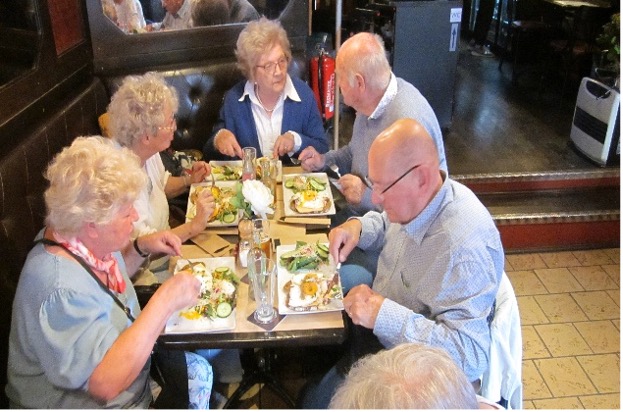 Na deze mooie rondrit door keerden we weer terug naar het “Klokske” om daar de lunch te gebruiken. Het restaurant had haar uiterste best gedaan om iedereen, door het ontbreken van een croquet op een boterham, brood met gebakken ei in de vorm van een uitsmijter voor te schotelen.