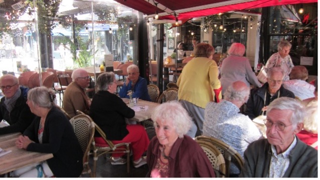 De eerste stop was bij het “Klokske” in Antwerpen. Omdat de bus niet bij het restaurant kon komen moesten de leden wel ongeveer 500 meter lopen. Voor sommigen een hele opgave.
